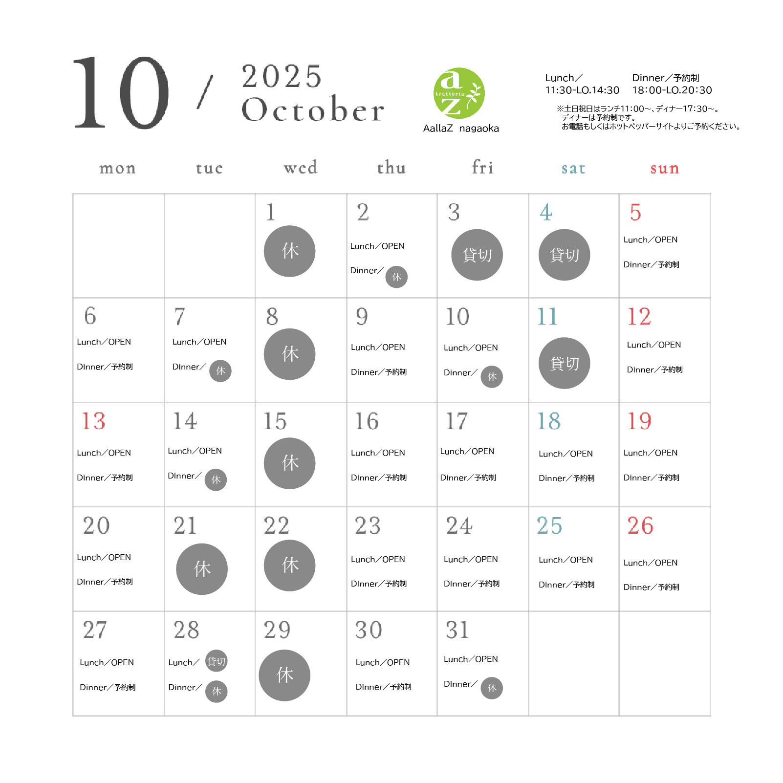 10月も貸切日が多くなり、ご不便をおかけしますが、